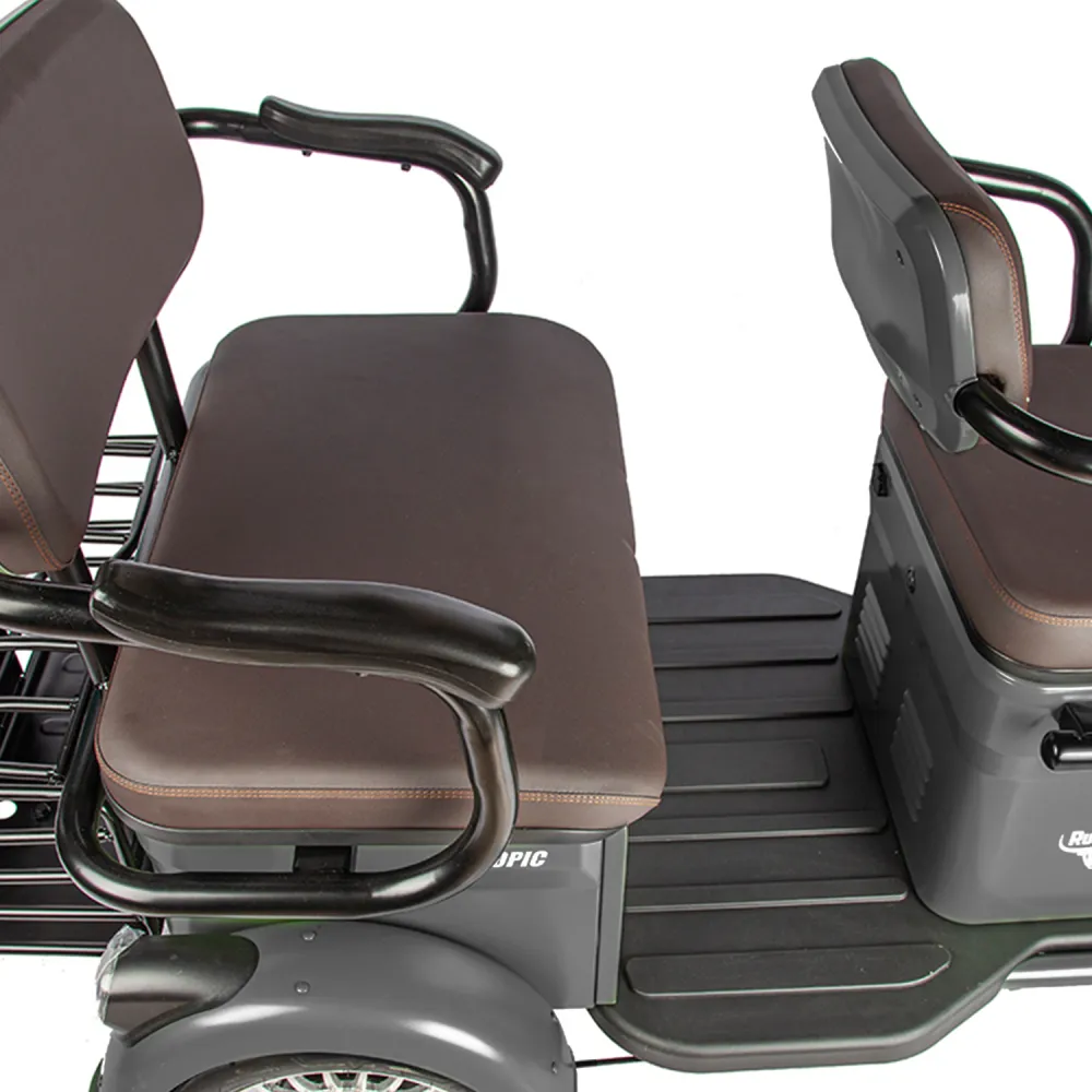 Мощность электротрицикла составляет 800 Вт, что позволяет ему справляться с различными дорожными условиями и подниматься на небольшие возвышенности без труда. Вы сможете комфортно передвигаться по городским улицам и наслаждаться свободой и удобством, которые предлагает Rutrike Топик Серый.