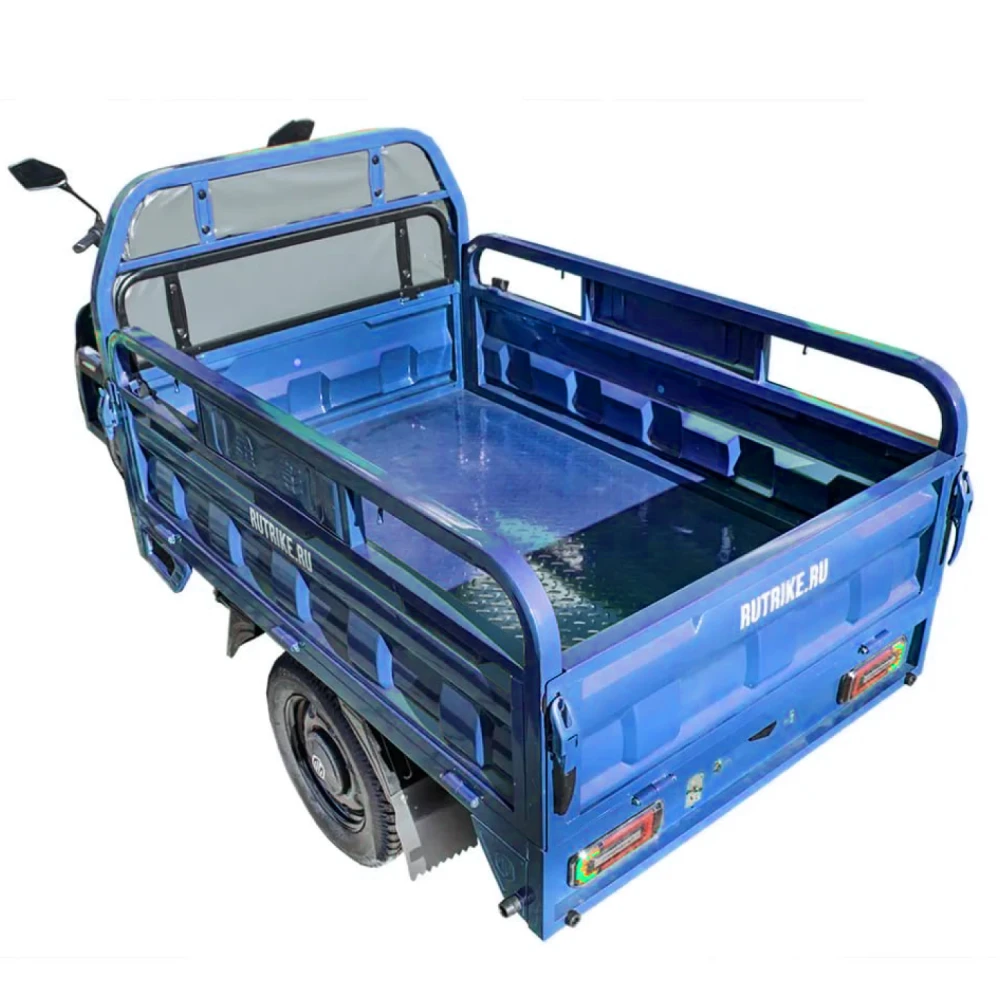 Грузовой электротрицикл Rutrike Маяк 1600 60V1000W синего цвета - это оптимальное решение для тех, кто ищет эффективное средство перевозки грузов с минимальными затратами на топливо и без вредных выбросов. Независимо от того, какие грузы вам необходимо перевезти, этот электротрицикл готов справиться с задачей и обеспечить вам комфорт и уверенность на дороге.