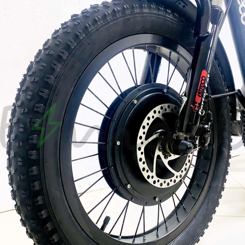 Велосипед имеет мощный электромотор c прямым приводом. Он легко преодолевает препятствия и неровности на пути благодаря передней амортизационной вилке. Имеет высокую проходимость и в снег, и в песок, и в грязь.