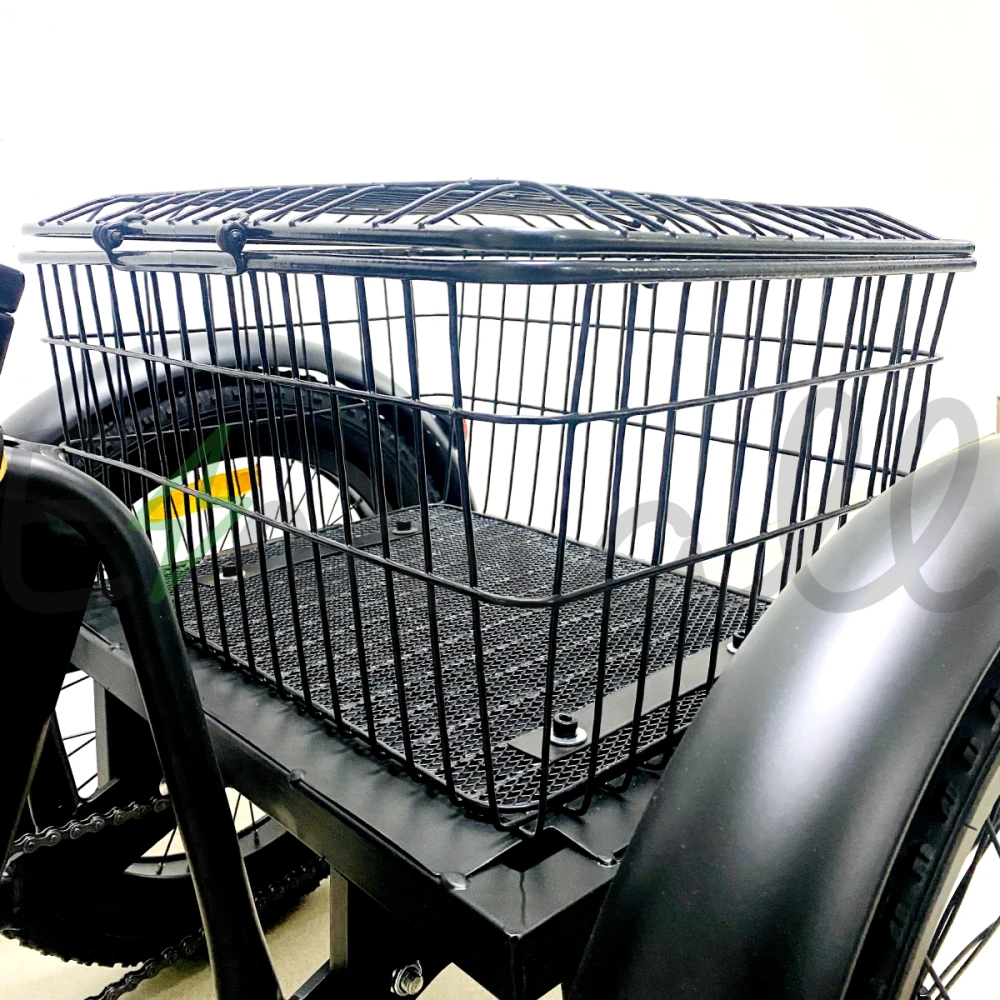 Работает от выносливой аккумуляторной батареи на котором можно проехать до 40 км. Имеет стильные светодиодные фары, стальные полноразмерные крылья. Впереди на руле расположена легкая корзина, сзади – большая вместительная.