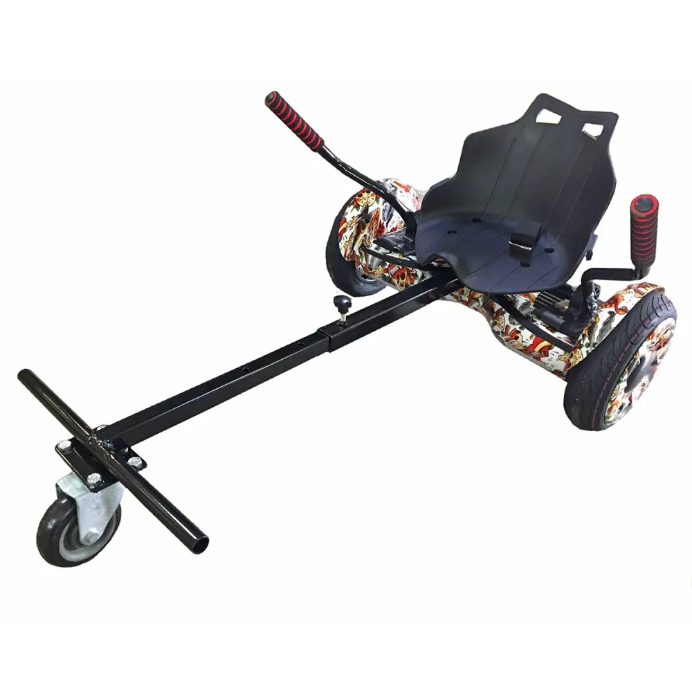 Тележка для гироскутера позволяет превратить ваш гироскутер в подобие электрокара, с большим сиденьем, куда может поместиться 1 взрослый и ребёнок. Управление данным аппаратом выполняется благодаря ручкам, которые давят на датчики давления.