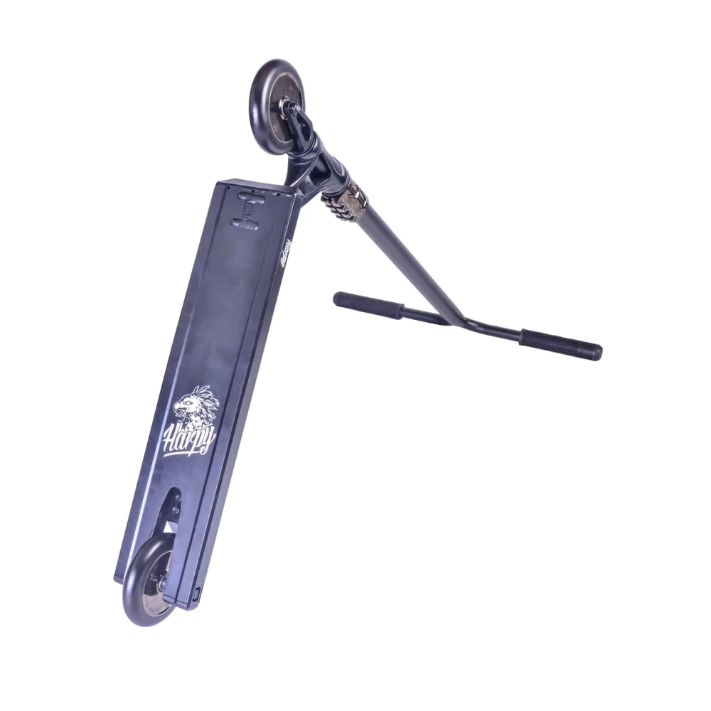 Небольшой вес самоката, удобный руль и надежная дека являются главными критериями безопасности выполнения трюков и маневрирования на дорогах. Рулевая часть имеет высоту руля 65 см. При необходимости может корректироваться до нужного размера. Изготовлена из хромолибдена. Внешний вид хрупкий и агрессивный одновременно. Самокат рассчитан на пользователей с параметрами роста 170-185 см, что подтверждает возможность пользования средством подростками и взрослыми.